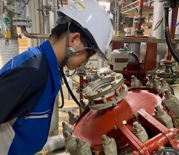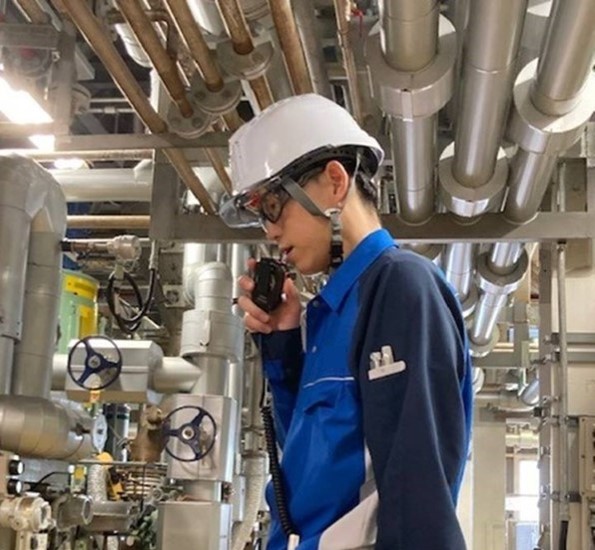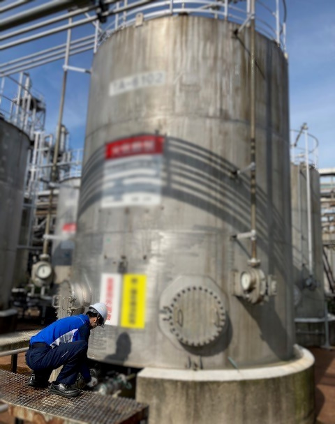 具体的には原料の投入・反応・濃縮・分離・乾燥・取り出しの24時間サイクルの作業を3交代勤務で従事しております。